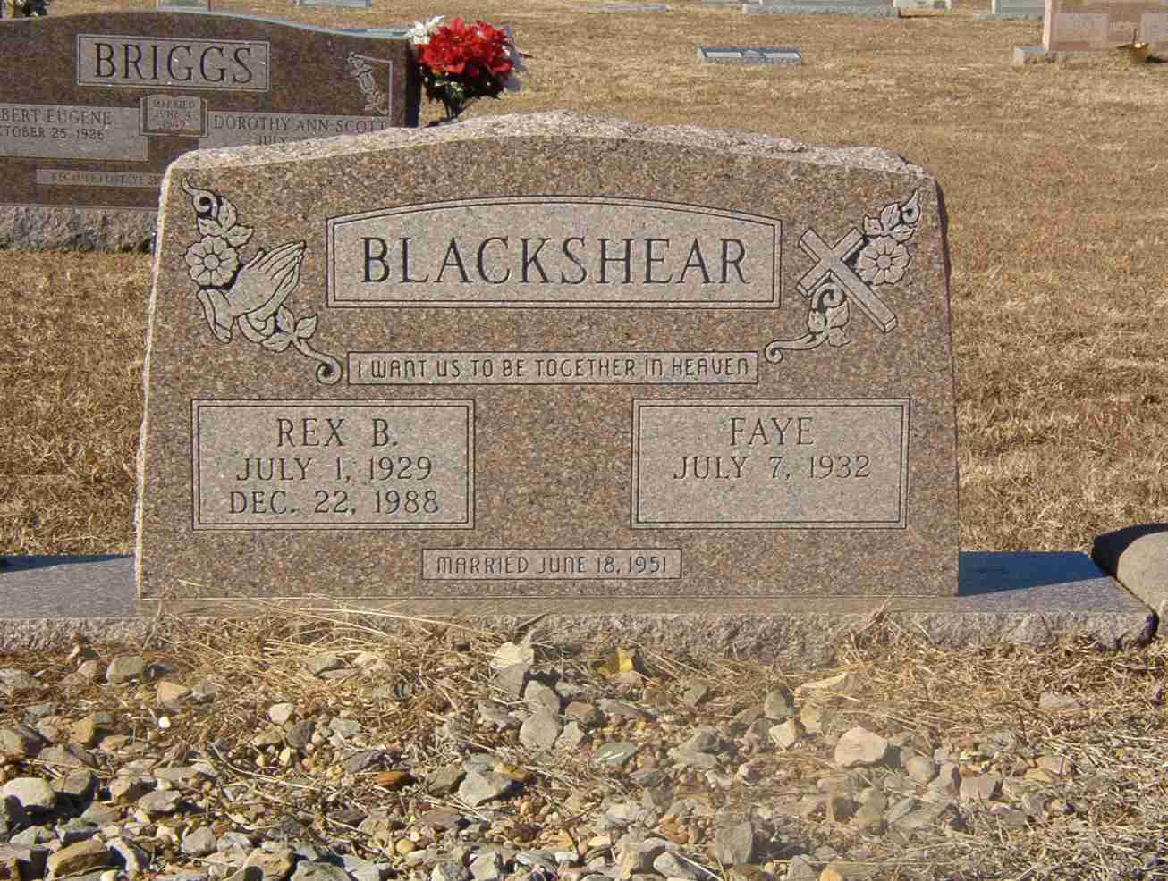 On the same stone with husband, Rex Burlon Blackshear.
