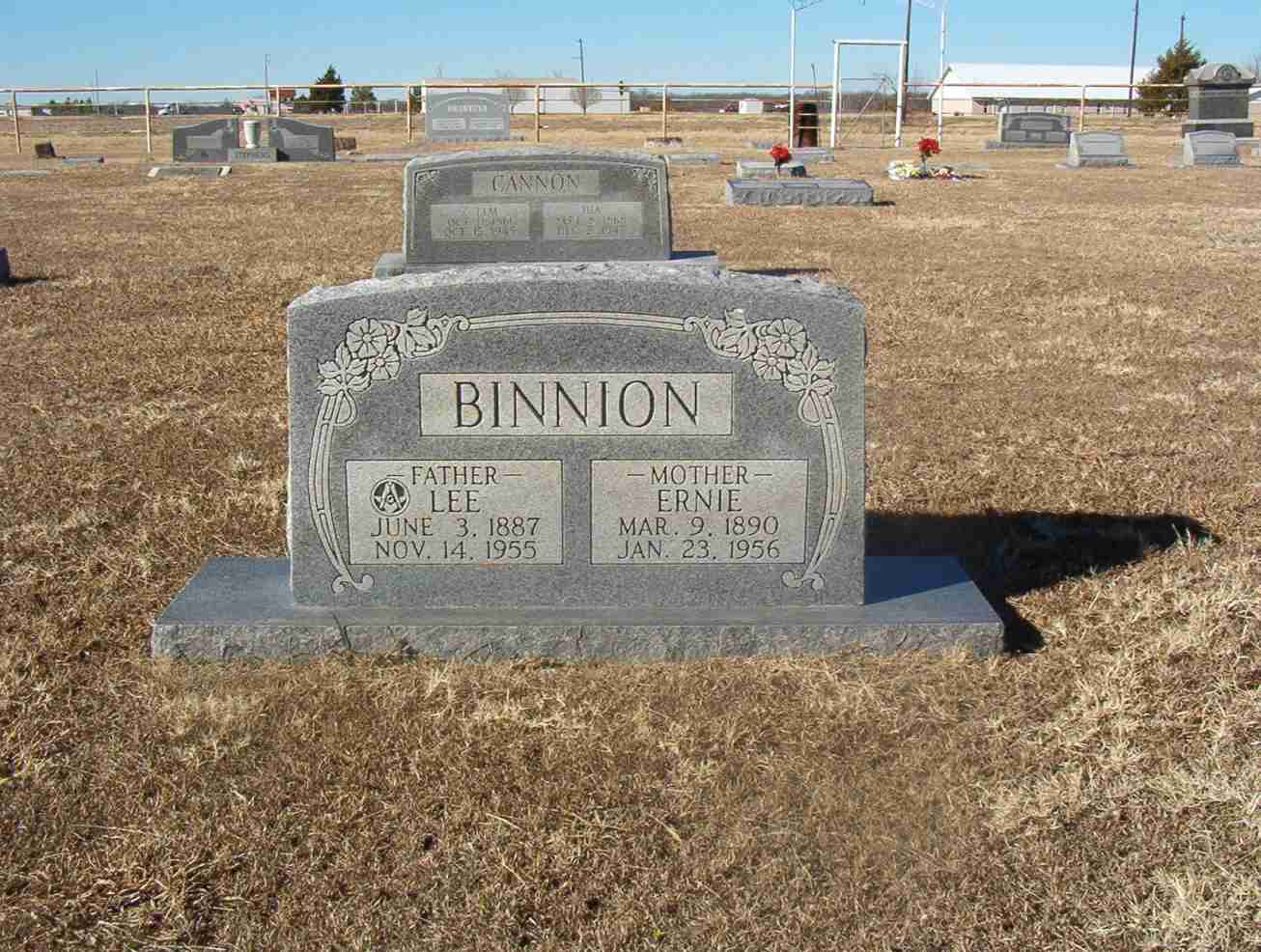 On the same stone with wife, Ernie Cannon Binnion. Tombstone is inscribed, 'Lee Binnion.'
